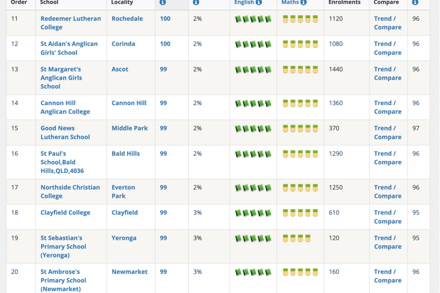 퀸즐랜드 초등학교 (프라이머리) 랭킹