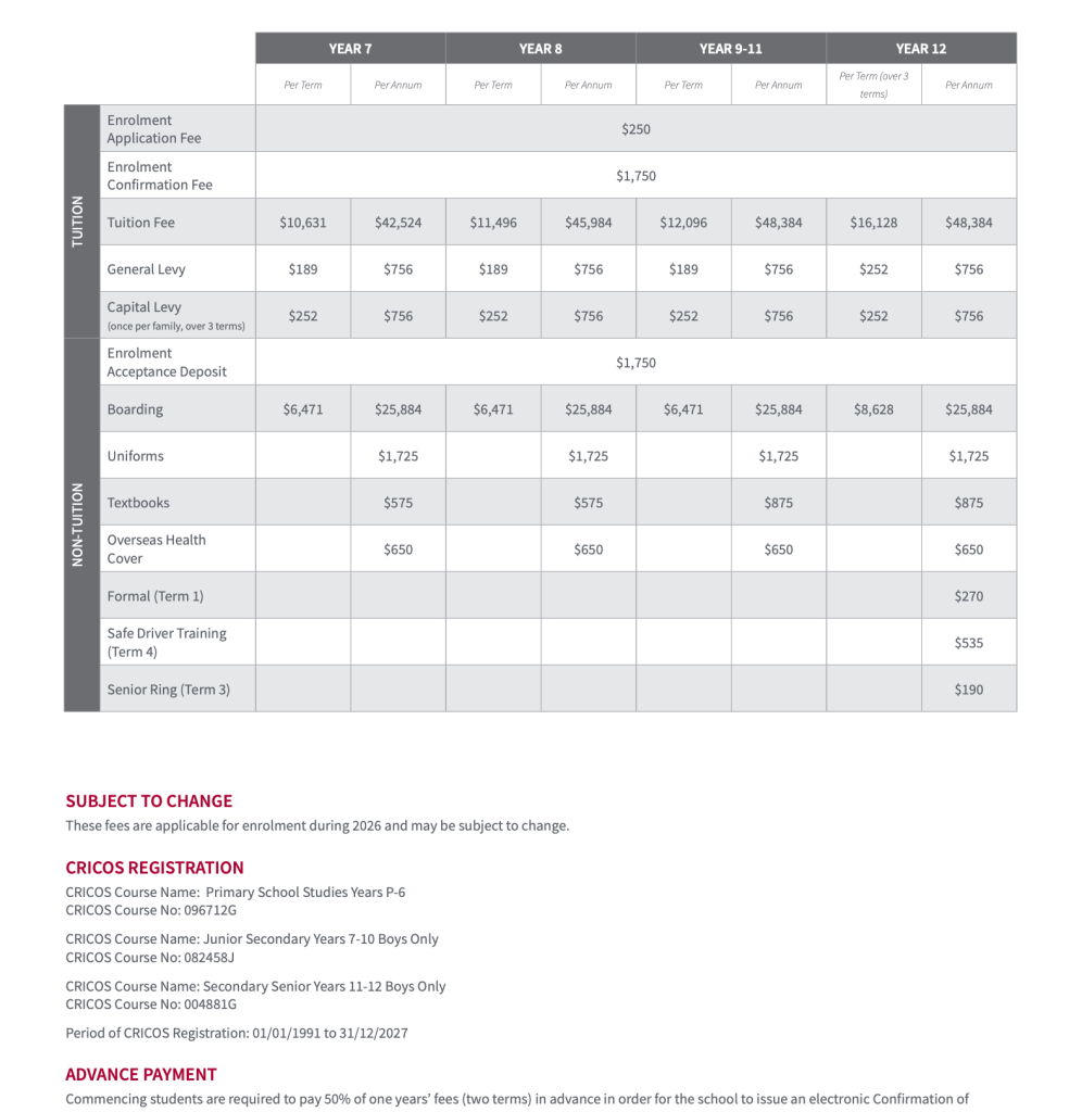 - 연간 순수 학비는 보통 호주 국적의 아이라면 $25,000~$40,000 AUD 이상이며, 유학생의 경우 2배 ~ 3배 이상의 학비가 적용되고 있습니다.