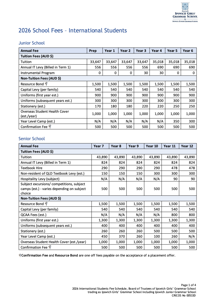 2026년 입스위치 학비 및 부대 비용이 2025년 대비 20% 인상되었습니다.